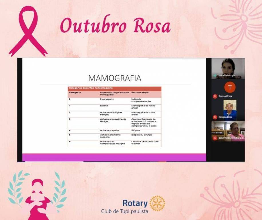 Reunião Rotary Club de Tupi Paulista com palestra sobre Saúde da Mulher: Outubro Rosa